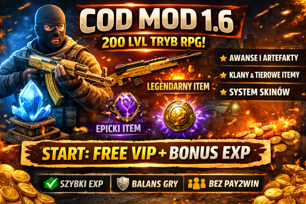 1. 🔥 COD MOD 200 LVL – ROZBUDOWANY RPG | NOWOŚĆ 🔥 🎯 IP: 57.128.250.140:27016 Szukasz czegoś więcej niż zwykły COD MOD? Dobrze trafiłeś — tutaj masz prawdziwy progres RPG, a nie nudne klepanie expa. ⚔️ CO OFERUJE SERWER? 🔹 200 POZIOMÓW + AWANSE KLAS Rozwijaj postać i odblokowuj nowe możliwości 🔹 SYSTEM ITEMÓW (TIERY) Każdy item może mieć różną jakość – od zwykłego do LEGENDARNEGO 🔹 ARTEFAKTY Unikalne bonusy zmieniające styl gry 🔹 SYSTEM KLANÓW Graj ze znajomymi i rozwijaj wspólny progres 🔹 SYSTEM SKINÓW Wygląd też ma znaczenie 😎 🔹 SKLEP (BEZ PAY2WIN) Zero przesady – liczy się skill i grind 🔹 DOBRY BALANS Każda klasa ma sens – brak jednej OP mety 🎁 START DLA NOWYCH GRACZY ✔️ FREE VIP ✔️ BONUS EXP ✔️ SZYBKI START ✔️ Przyjazny dla nowych graczy 💣 DLACZEGO WARTO? 👉 Serwer nastawiony na długą rozgrywkę 👉 Systemy jak w grach RPG (loot, rozwój, progres) 👉 Aktywna administracja 👉 Ciągłe aktualizacje 🚀 DOŁĄCZ TERAZ 🎯 57.128.250.140:27016 Nie czekaj aż inni Cię wyprzedzą – zacznij wbijać lvl już teraz!